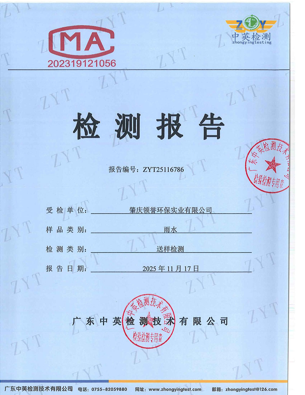 关键词: 11月,雨水,检测,报告,肇庆,领誉,环保,实业,