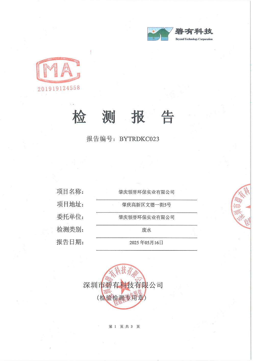 关键词: 5月份,雨水,检测,报告,肇庆,领誉,环保,实业,
