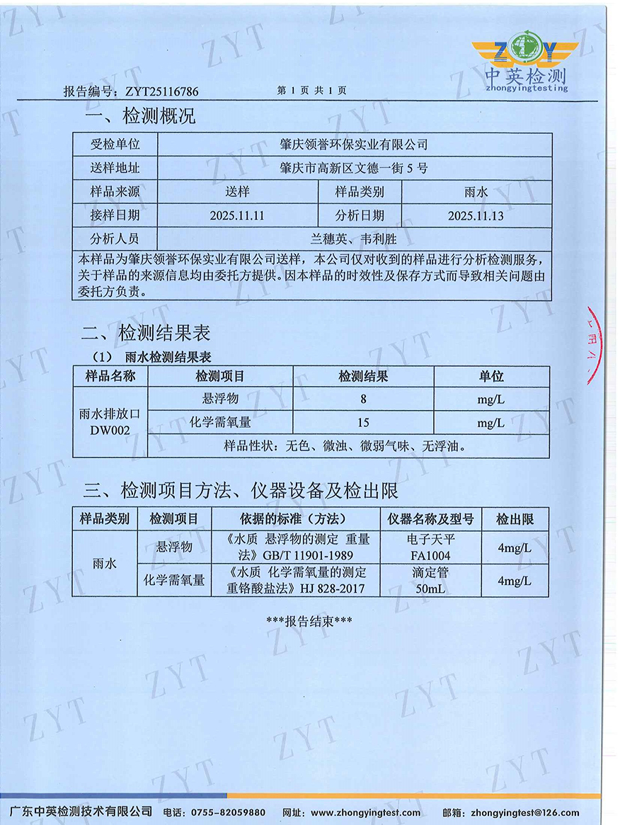 关键词: 11月,雨水,检测,报告,肇庆,领誉,环保,实业,